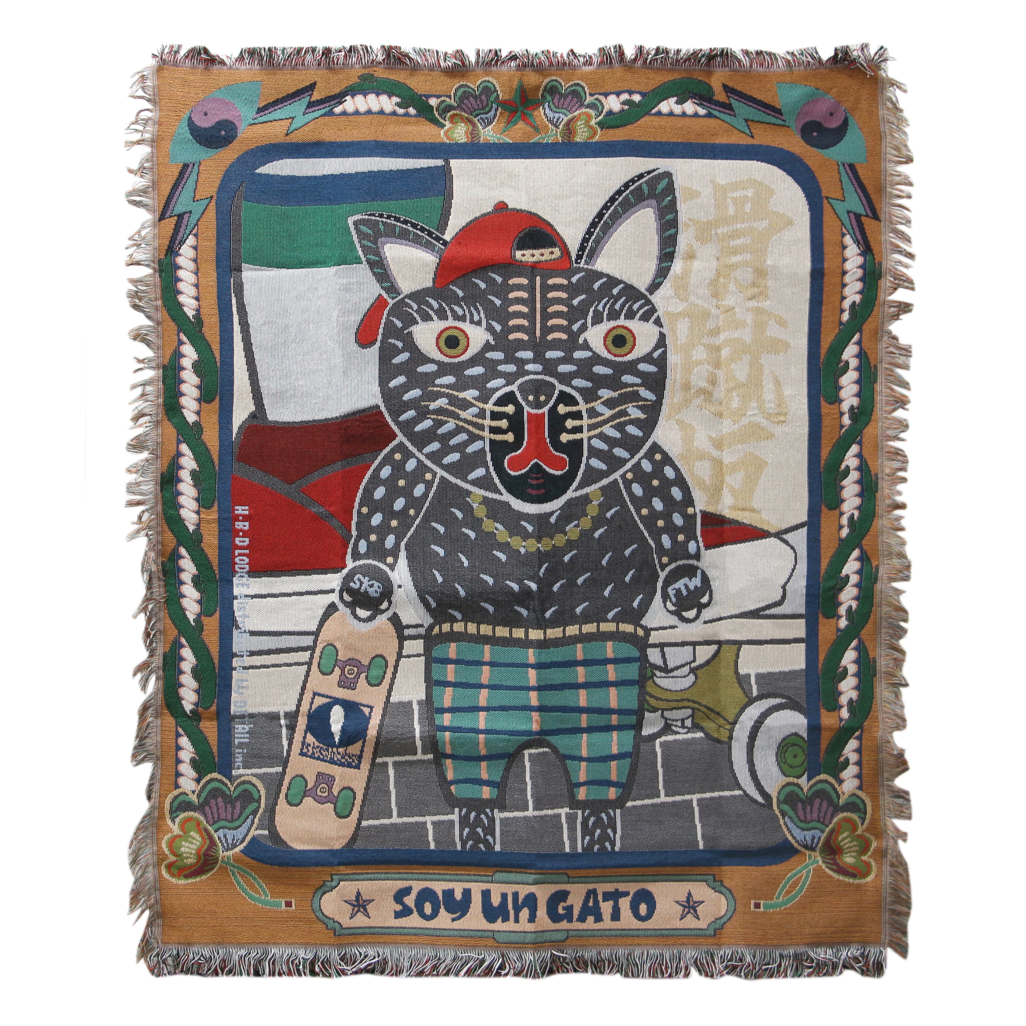 OAX Throwket "Black Cat" オアハカ スローケット "ブラック キャット" 黒猫モチーフの大判ブランケット